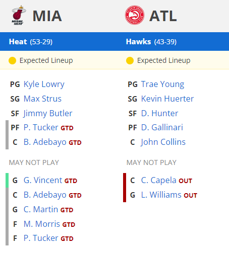 마이애미는 인사이드에서 중요한 아데바요와 터커가 GTD가 떴습니다.