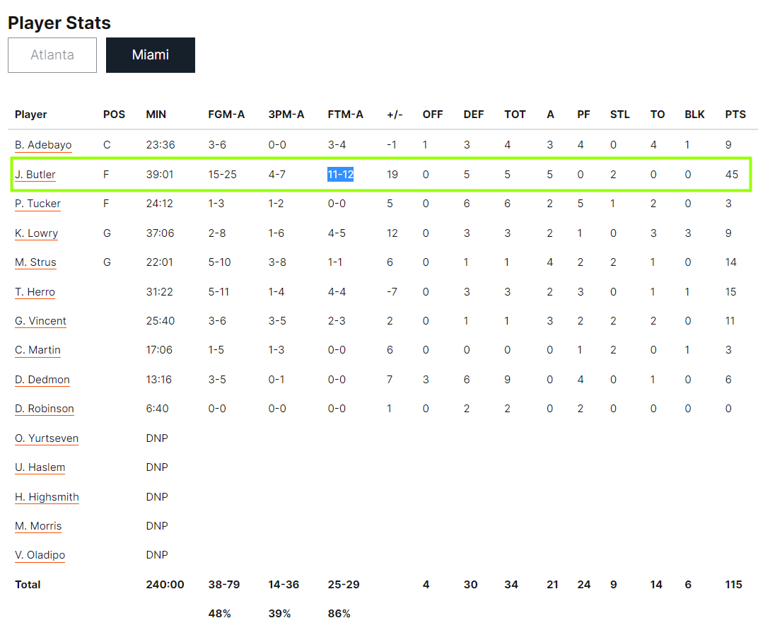 2차전은 버틀러가 45점을 쓸어담으며 승리에 기여했습니다.
