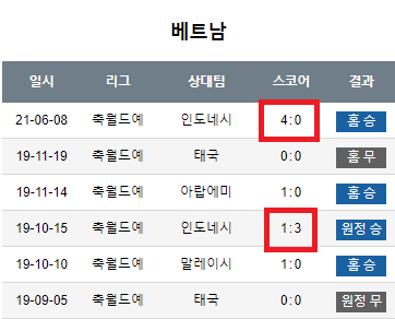 직전경기는 배트남이 인도네시아를 상대로 4골을 기록하였는데