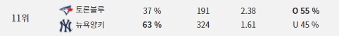 토론토는 빠따가 좋고 , 양키는 선발이 좋져