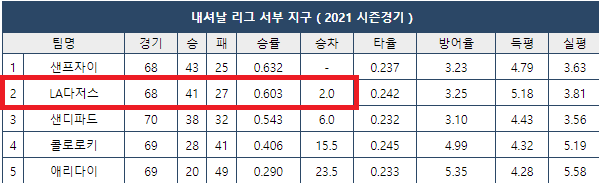 현재 다저스는 늘서부 2위져 , 당연히 때가되면 1위로 올라갈겁니다