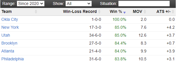 뉴욕,유타,다음으로 홈에서 정배시 승률이 높은팀이 브루클린이져