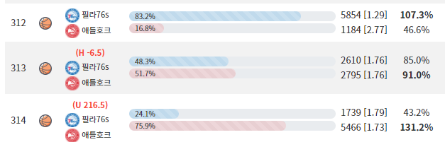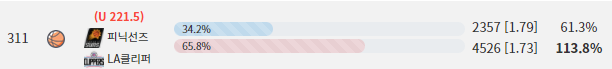 피닉스경기도 오버가 66%면 3명중 2명이 오버를 가기도 하고