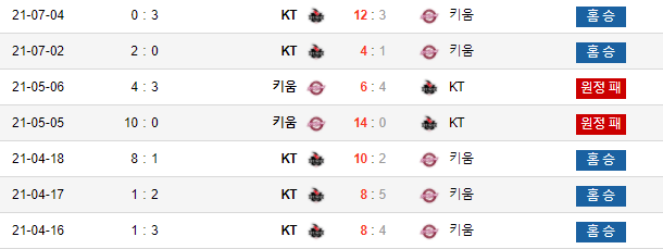 케티와 키움의 올시즌 맞대결 홈팀전승
