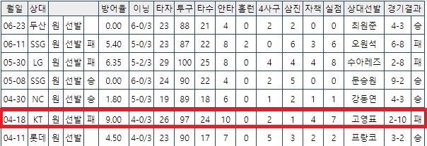 최근 한달간의 소형준 투구기록을 살펴볼때 이정도면