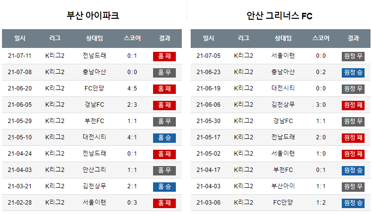 그러면 지난 10경기에서 부산이 이긴확률은 20% 고