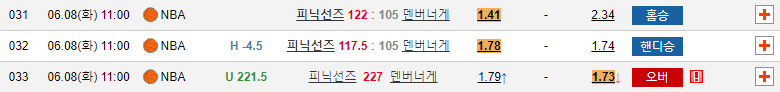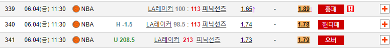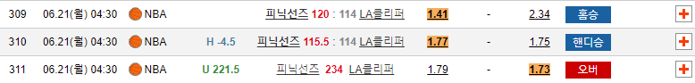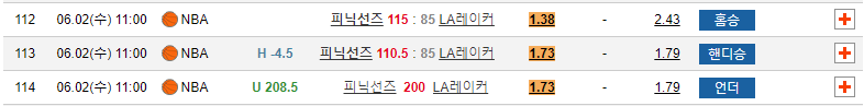 PHX Suns WIN -4.0 총 배당 : 1.90