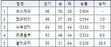 보스턴이 지고 , 템파가 이기면 승차는 제로가 된다는거