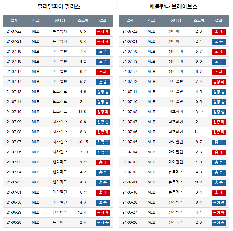 양팀은 늘동부 소속팀으로 필라가 47승47패 , 애틀이 46승 48패로