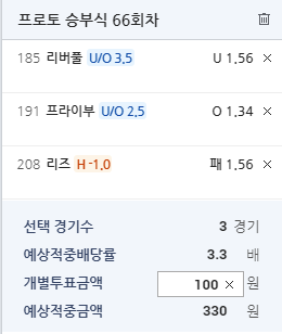 축구에서 3.3배는 또 그렇게 높은배당이라 할수는 없는데
