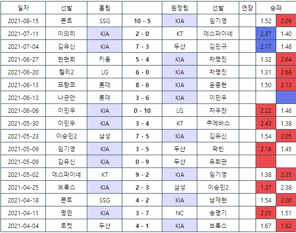 기아는 올시즌 키움에게 6승 3패를 기록하고 있고 홈에서 져본적이 없다