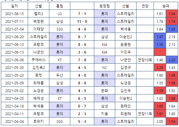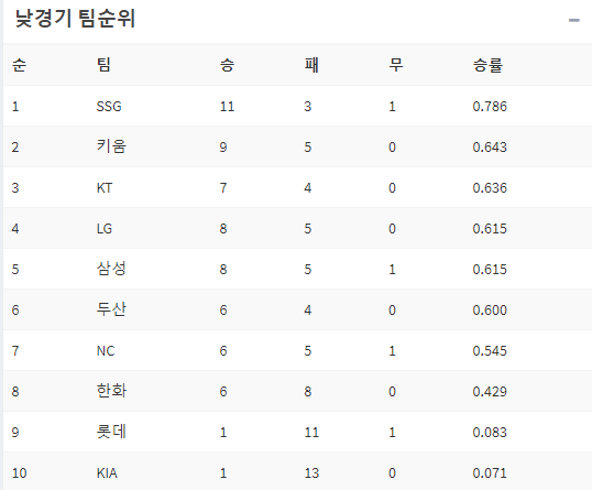 그리고....기아와 롯데는 일요일 성적이 안좋았을겁니다
