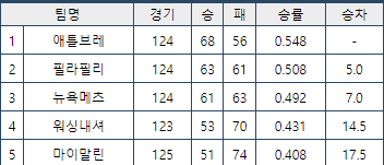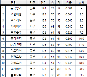 오클과 시애틀이면...... 0.5게임이 아닌 1.0게임경기져