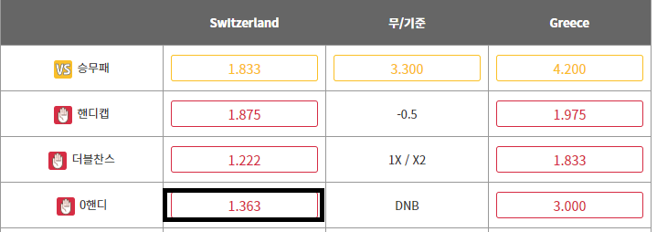 사이트들이 모두다 스포노트처럼 스위스0핸디 1.36배