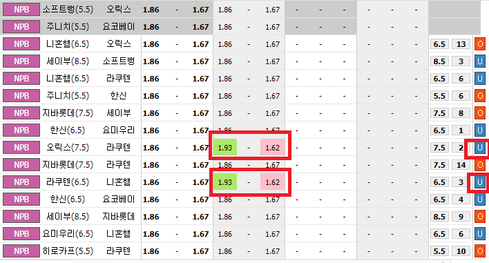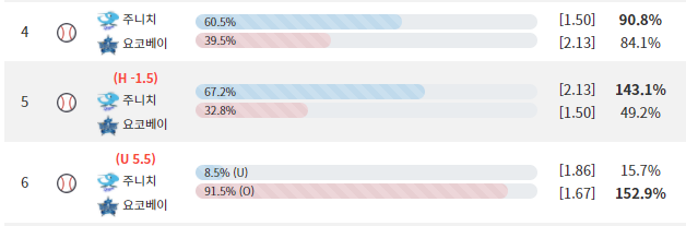 물론 주니치가 이길경우는 언더확률이 높지만