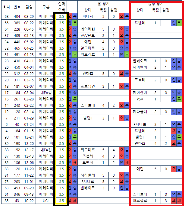3.5기준점을 받은 아약스는 홈에서는 오버가 더러있지만