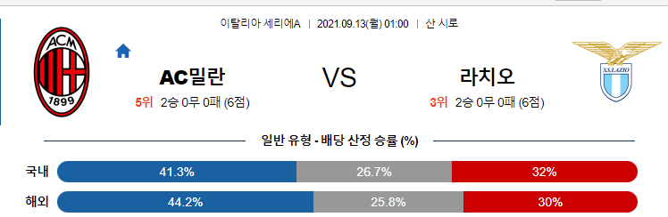 밀란의 승+무  약70%    라치오의 승이 약30% 정도인거 같고
