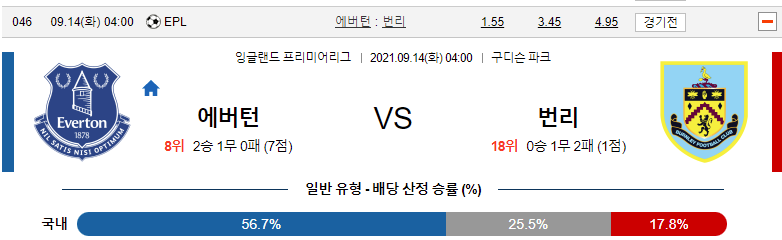 물론 해당경기는 에버턴승이 좋아보이는 경기는 아닙니다