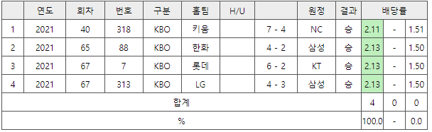 | 3 | 스포츠맨 | +231 | 216 % | 3 |