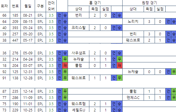 3.5기준점을 받은 리버풀은 14경기 연속 언더를 찍고있습니다