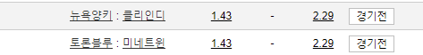 토론토와 동일배당이다