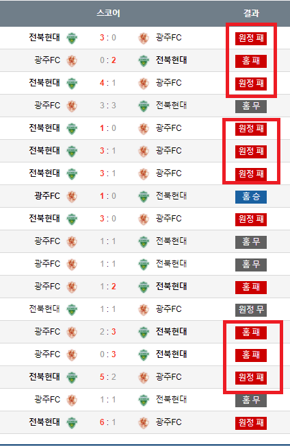 예를들어 이처럼 패턴상  광주가 전북에게 4연패가 없었다