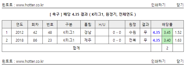 홈 4.35를 받은 배당또한 무승부가 더러있고