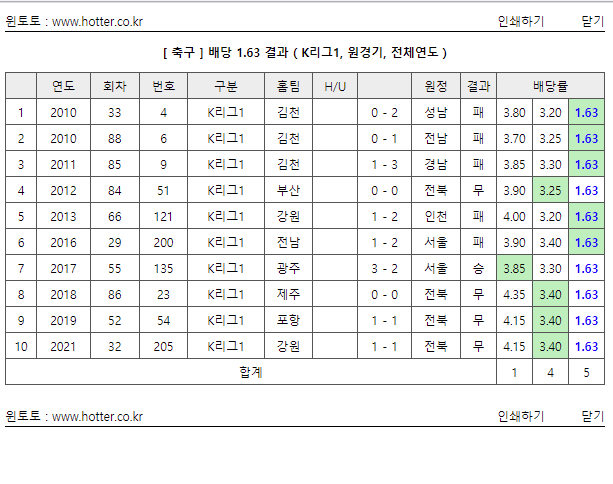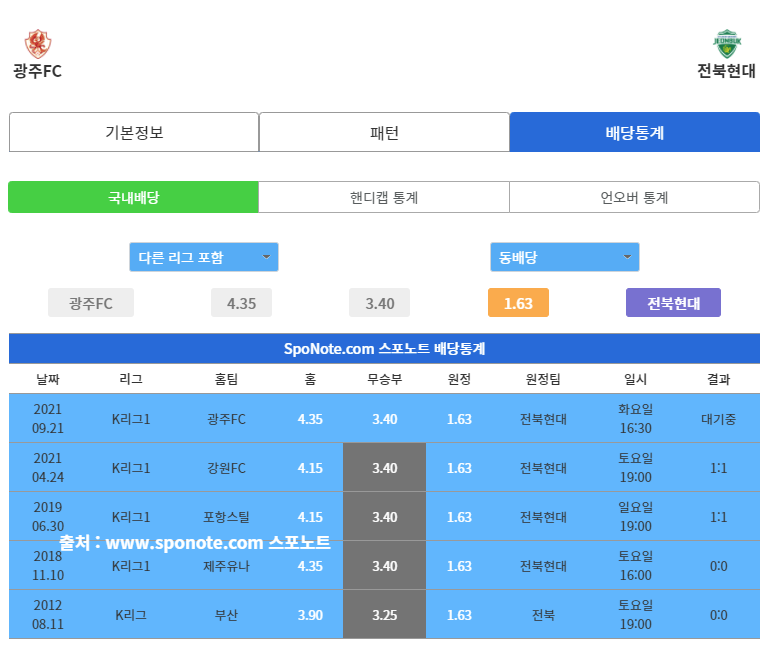 전북이 원정에서 1.63을 받았을때 무승부가 많네요