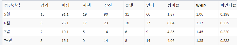 데스파이네의 가장 큰변수는 4일휴식후 등판이 아닌