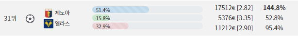 해당경기는 일단 제노아 와 베로나의 전적을 살펴보면