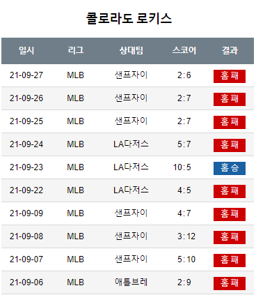 전체30개팀중 홈승률이 7위팀이 콜로라도 이며