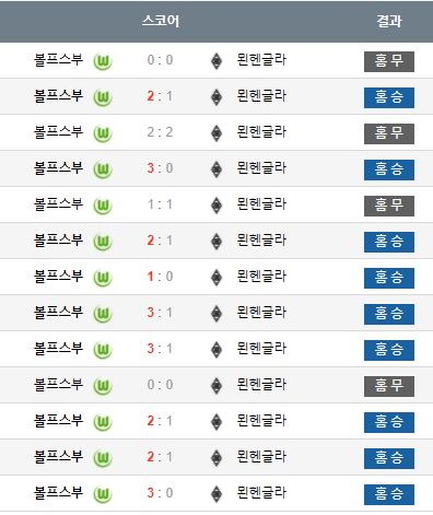 볼프가 홈에서 뮌헨글라드바흐 한테 진적이 거의 없져