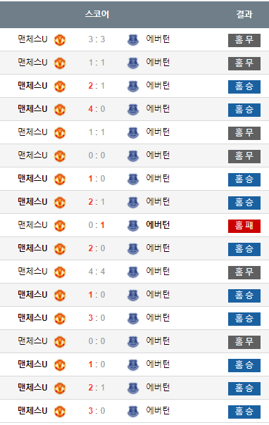 맨유가 홈에서 에버턴에게 진적이 거의 없져....