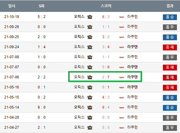 7월 6일에 오릭스가 2패7 로 패배를 했습니다