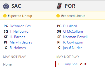 11:10 POR Trail Blazers VS SAC Kings