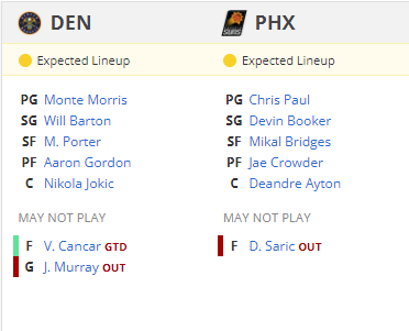 PHX Suns VS DEN Nuggets