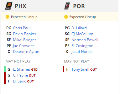 POR Trail Blazers VS PHX Suns