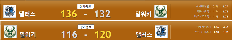 댈러스가 최근2시즌 4경기에서 밀워키를 3번 이긴팀입니다