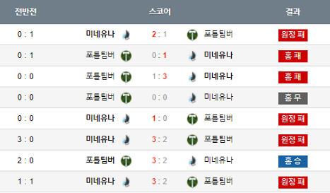 위의표는 최근전적을 표시한것이져 충분히 원정미네소타를 선택할만하다 라고 생각