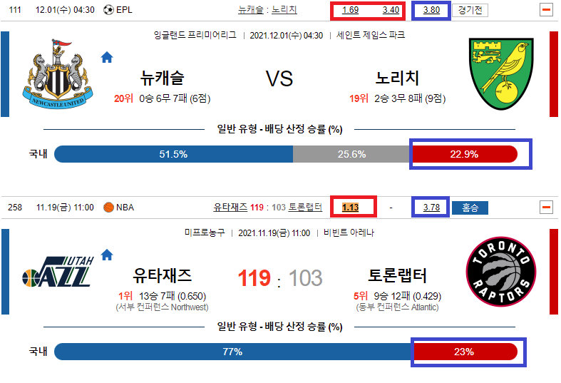 토론토 역배는 3.79 이고   역배확률이 23.0% 일때 이런배당을 받져