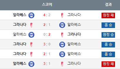 양팀은 홈팀의 승리비율이 높고 알라베스가