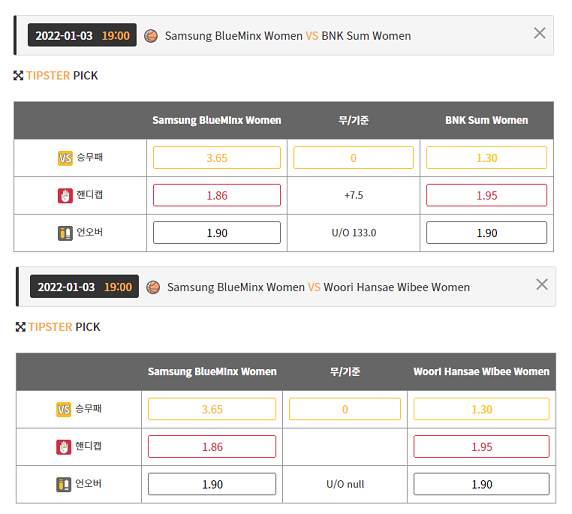 Samsung BlueMinx Women VS Woori Hansae Wibee Women