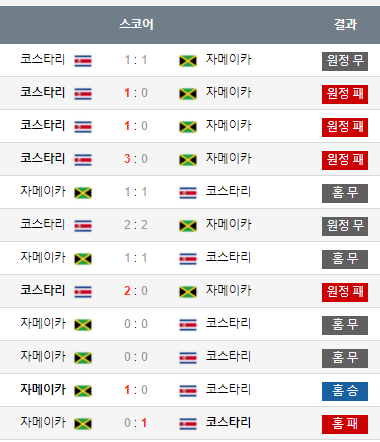 자메이카입장에서는 코스타를 상대로 4승 10무 9패 겠죠