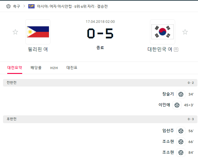 우리나라가 필리핀을 5-0 으로 대승을 한적이 있습니다