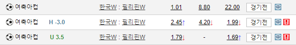 South Korea Women WIN -3.5 총 배당 : 1.90