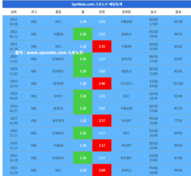 장판의 배당을 보니깐  장판이 1.18을 받았을때 역배가 많았던것 같습니다