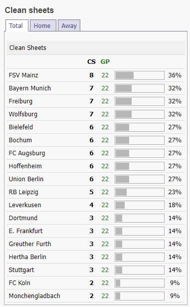 이 부분에서 밑에서 보면 22경기에서 레버쿠젠은 4경기만이 클린시트를