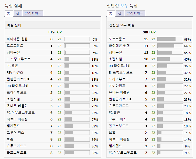 뮌헨은 무려 22경기에서 0득을 한 경기가 없습니다