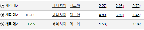 베니스와 제노아는 제 생각에 골이 안날 가능성이 높아보이지만