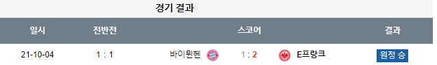 올시즌 첫맞대결에서 뮌헨이 홈에서 프랑크에게 패배를 합니다